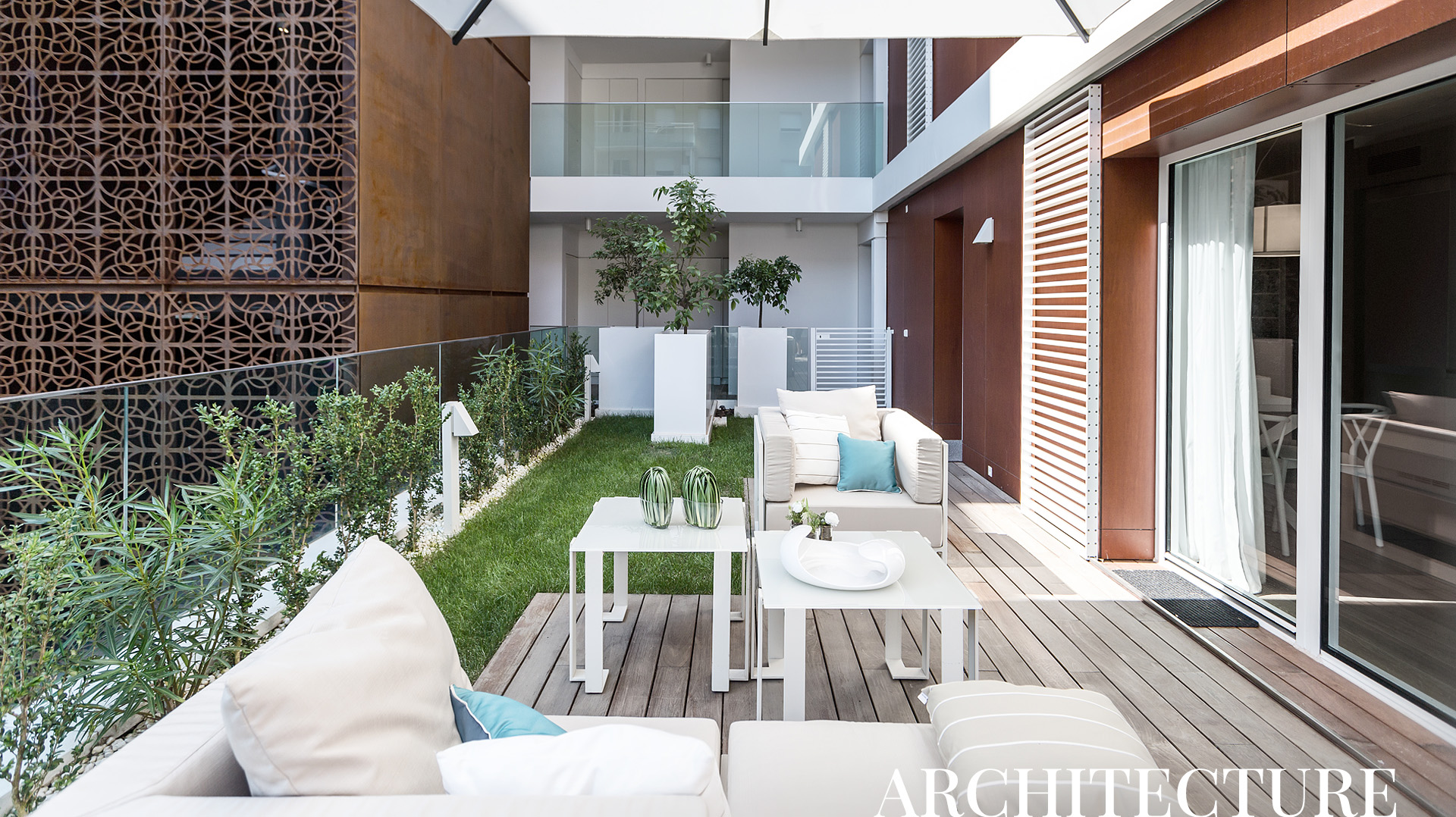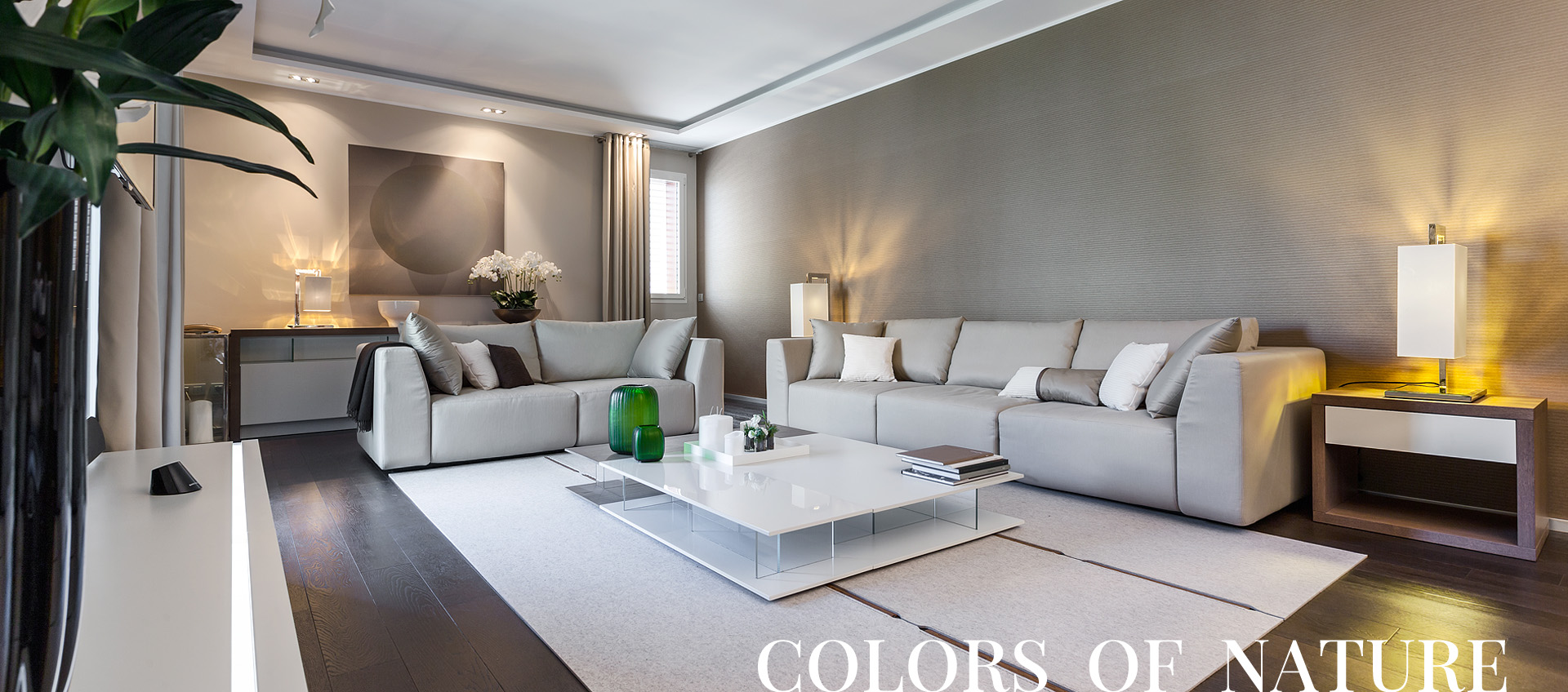 Натуральные, природные оттенки (песочные, кофейные и шоколадные) работают как фон, оттеняющий яркие цвета белого и зеленого.