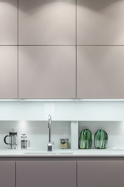 “ В интерьере этих апартаментов в городке Кап д'Ай на Лазурном берегу Франции, соединились рафинированность светского образа жизни и расслабляющая атмосфера отдыха на морском побережье. Мы хотели выразить идею отдыха посредством характерной для этой местности цветовой гаммы и современного, предельно функционального без лишней декоративности, пространства. ”
