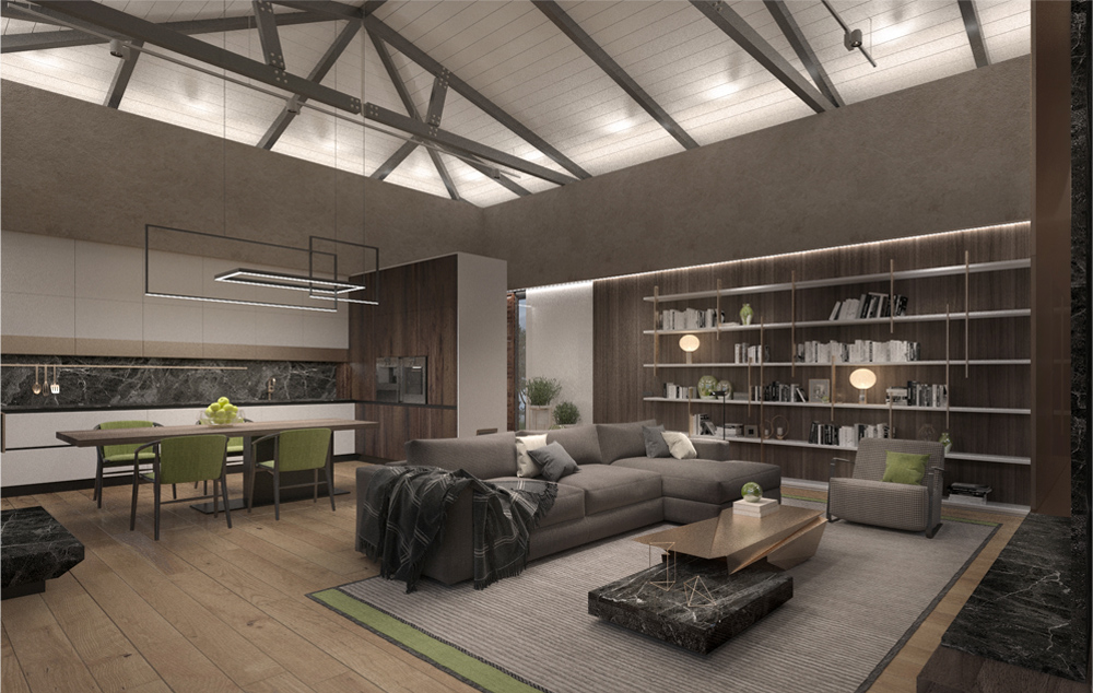 " Основной концепцией реконструкции загородного дома стала идея современной интерпретации традиционного шале - сохранение характерных для этого стиля элементов в сочетании приемами современной архитектуры. Натуральные материалы с грубой фактурой использованы на контрасте с ровными поверхностями штукатурки, металла и глянцевых лакированных поверхностей. "