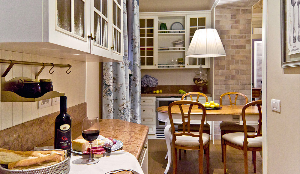 Итальянский Прованс всегда начинается с кухни. Именно кухня является настоящим “сердцем” дома, объединяет людей и наполняет дом теплыми сердцу запахами.Данная кухня выполнена в традиционном стиле: